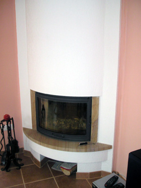 Krbová vložka Blanzek 10 kw, pískovec Raibow, umístěno do rohu.