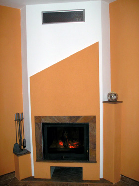 Krbová vložka Mars, vysouvací sklo, 14 kw, umístěno do rohu, pískovec Rainbow.