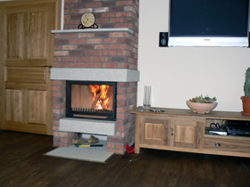 Krbová vloka Mars, výsuvné sklo, 16 kW, lícové cihly, tryskaná ula.