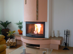 Krbová vložka Blanzek, 10 kW, panoramatické sklo (oblouk), pískovec Rainbow.